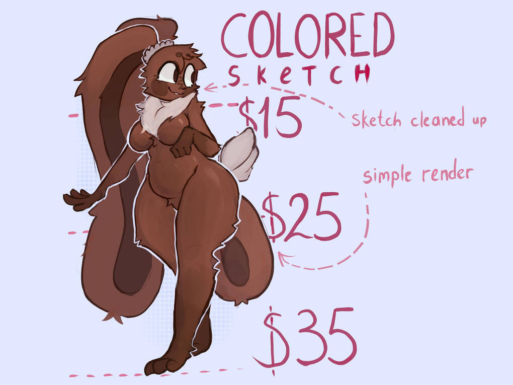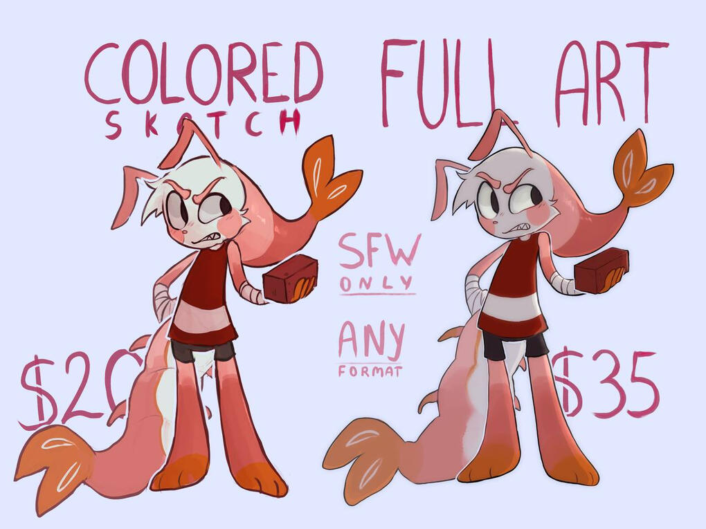 REFERENCE - calculated based on the price lists above. can be a color sketch or full art. basic style or chibi